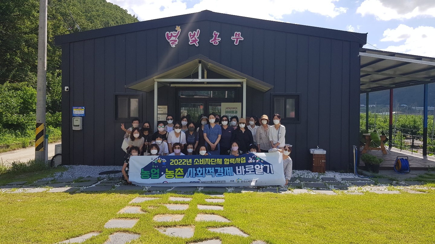 '농업.농촌 사회적경제 바로알기' 체험활동 대구경북소비자연맹(회장 임경희)에서는 ‘농업.농촌 사회적경제’를 바로알기 위해 8월5일(금)경상북도 영천시 임고면에 위치한 농업회사법인(주)영천별빛농부 농촌체험 교육농장에 방문하였습니다. 이곳은 지리적 이점(영천은 비가 적고 햇빛이 좋음)을 이용해 당도 높은 복숭아, 특히 제초제, 강제착색제, 과실비대제를 사용하지 않는 건강한 복숭아를 재배하고 있었습니다. 프로그램으로는 복숭아고목을 이용하여 다육이를 심는 원예체험, 복숭아를 이용한 간식(팝콘, 쨈, 청 등)만들기 등 여러 가지 체험이 있었고 오늘은 복숭아청 만들기를 하였습니다. 이외에도 복숭아를 주제로 다회차 프로그램을 계획, 수립하여 청소년을 대상으로 수확체험 등 농촌의 활동을 통해서 꿈과 적성을 찾을 수 있는 프로그램이 있었습니다 오늘 체험활동을 통해 사회적경제에 대한 이해를 높이고 사회적 농장을 운영하는 목적 및 농촌의 지속가능성을 위해 많은 분들이 노력하고 있다는 것을 알게 되었습니다.